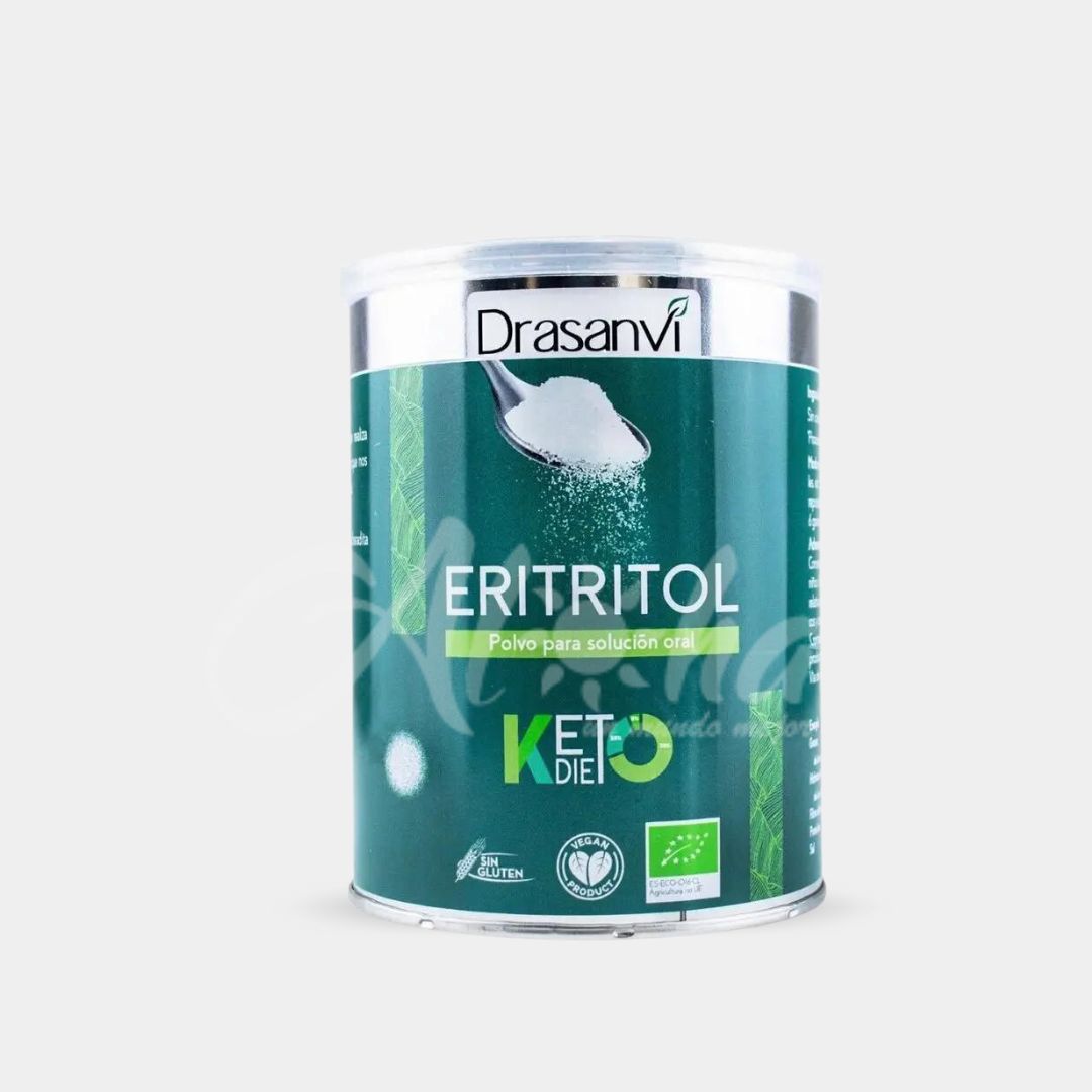 El Eritritol es un edulcorante natural, es decir, es extraído de una fuente natural. Se trata de un edulcorante bajo en calorías y recomendado para diabéticos. Además posee certificado ecológico, cumpliendo las características de los consumidores más exigentes. El Eritritol no aporta energía al organismo porque no se metaboliza, con lo cual, nuestro tracto intestinal no lo puede absorber y es eliminado. De sabor fresco, y con un poder edulcorante ligeramente inferior al de la azúcar blanca, se ha convertido en una de las alternativas saludables a nuestros platos y recetas dulces. Además, por sus propiedades se puede usar en la elaboración de recetas horneables.