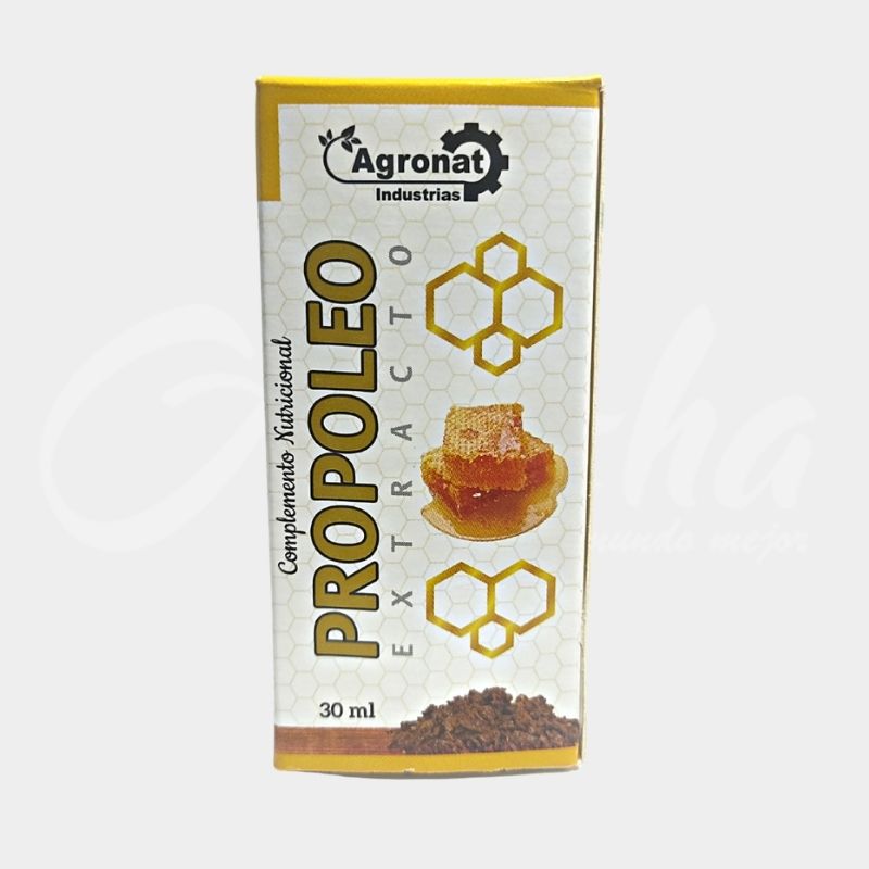 Extracto propoleo de Agronat es de vital importancia dentro de la nutrición y la salud,rico en sustancias minerales: oligoelementos, Acidos: benozico, cafeico, sinanico, felierico, crisina, dimetonifiavones. En general tiene una influencia benéfica sobre mecanismos inmunologicos.