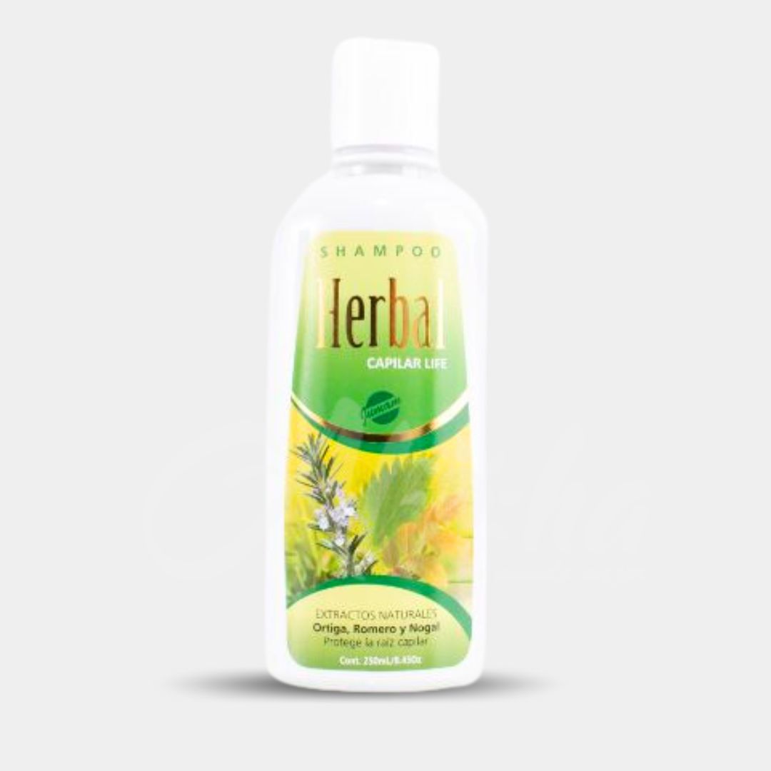 Shampoo Herbal Jumam , fortalece y evita la caída del cabello , mejora la circulación capilar , combate la caspa , es antiséptico y astringente. provee suavidad y brillo sedoso , indicados para cabellos quebradizos , resecos y maltratados por el sol.