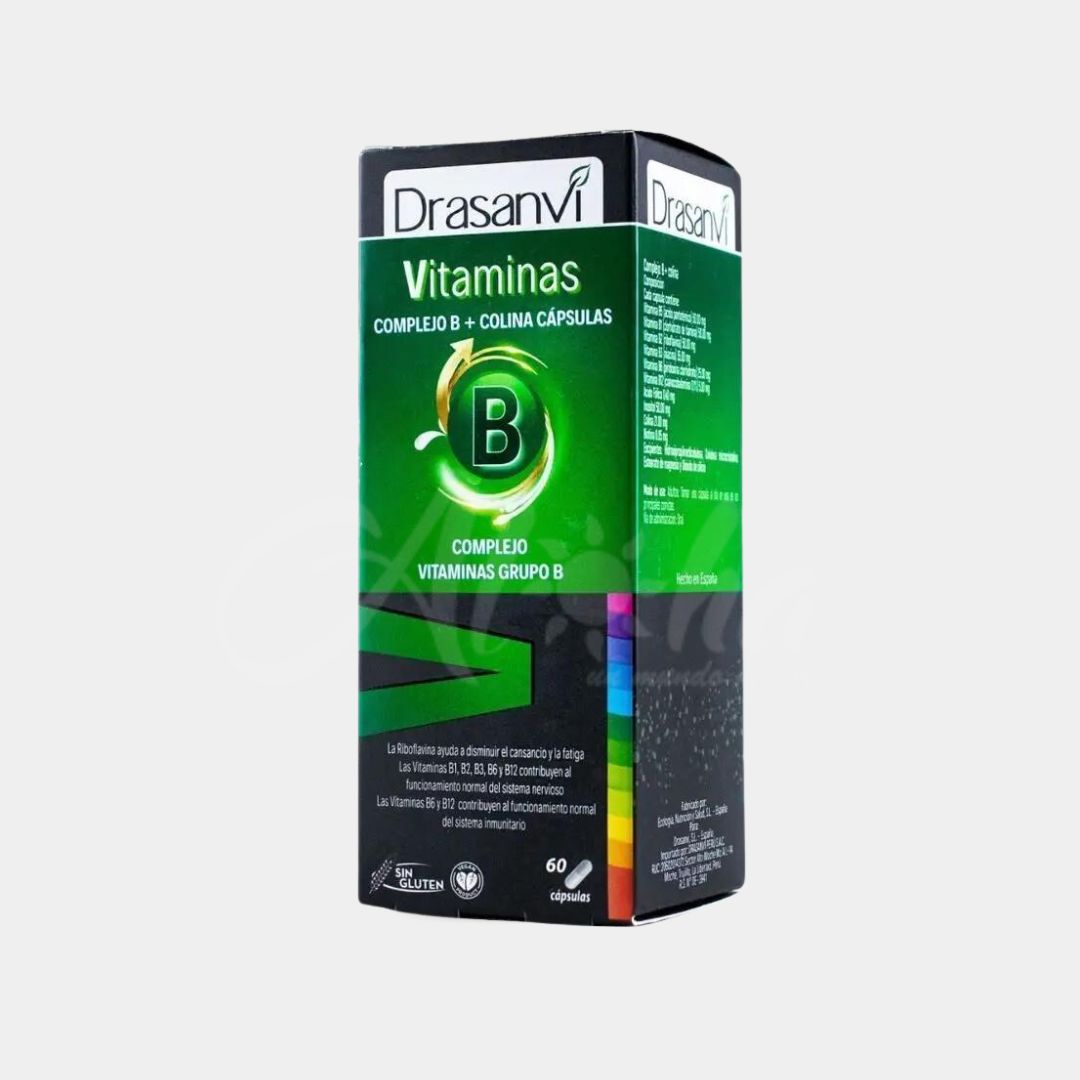 Las Vitaminas del complejo B lo forman 8 vitaminas solubles en agua, las cuales son: Tiamina (vitamina B1), riboflavina (Vitamina B2), niacina (Vitamina B3), ácido pantoténico (vitamina B5), piridoxina (vitamina B6), biotina (vitamina B7), ácido fólico (vitamina B9), cobalamina (vitamina B12). En el complejo B de Drasanvi hemos incorporado también la colina, el cual es un nutriente esencial soluble en agua, y el inositol que se conoce como vitamina B8.